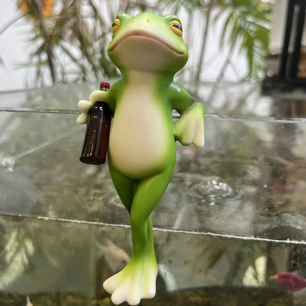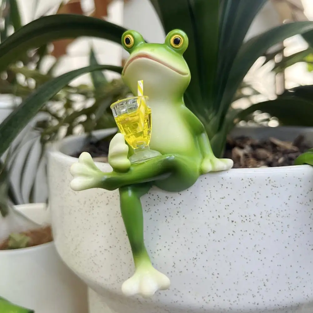 Cute Frog Statue, Frog Figurines Ornament Plant Decorations for Pots Outdoor Resin Hanging Frog Sculpture Garden Home Decor