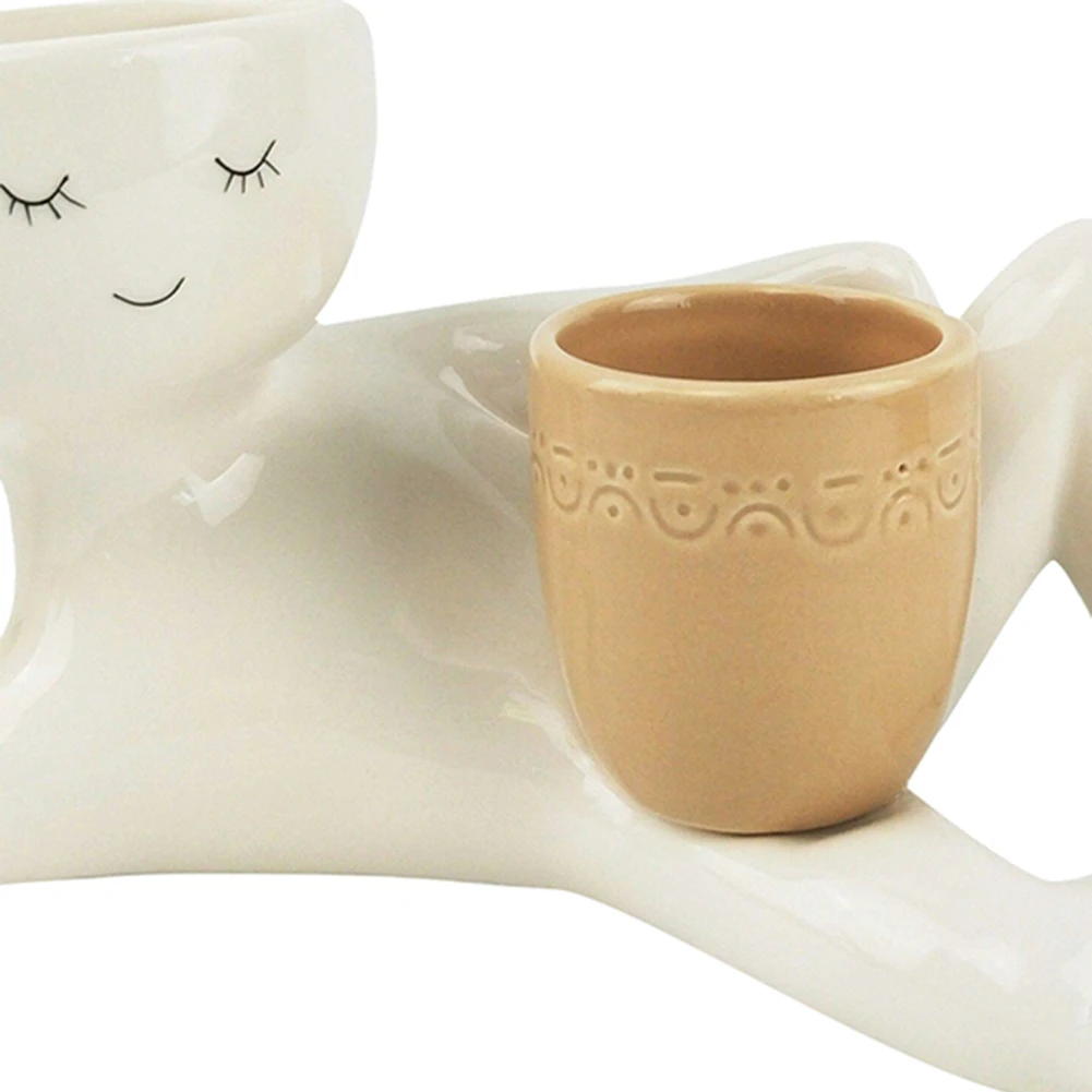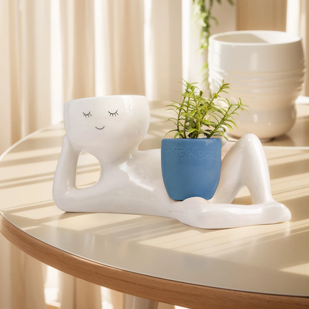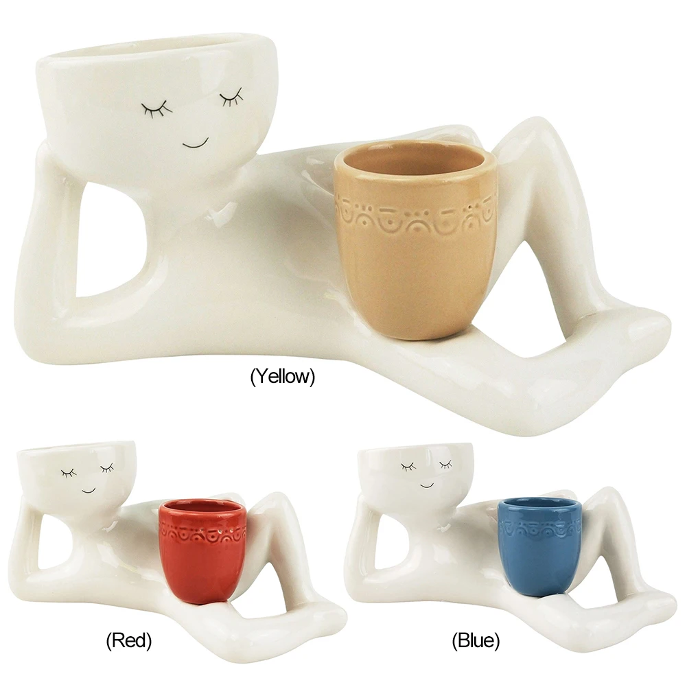 Relaxing Person Holding Pot Planter with Drainage Hole Kinky Planter Ornament Resin Desktop Body Flower Pot Home Office Decor