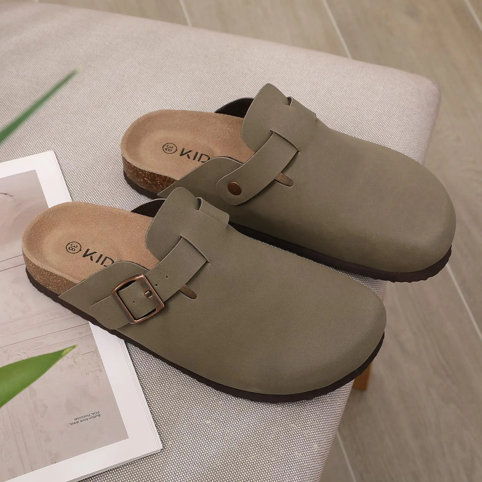 Shevalues New Genuine Clogs For Women Men Buckle Suede Clogs with Arch Support Soft Cork Footbed Mules Shoes Thick Beach Sandals